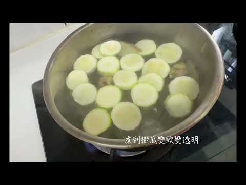 熬製清湯底: 鍋中放入 1200ml 的水,煮滾後放入 5 片薑片與櫛瓜片。